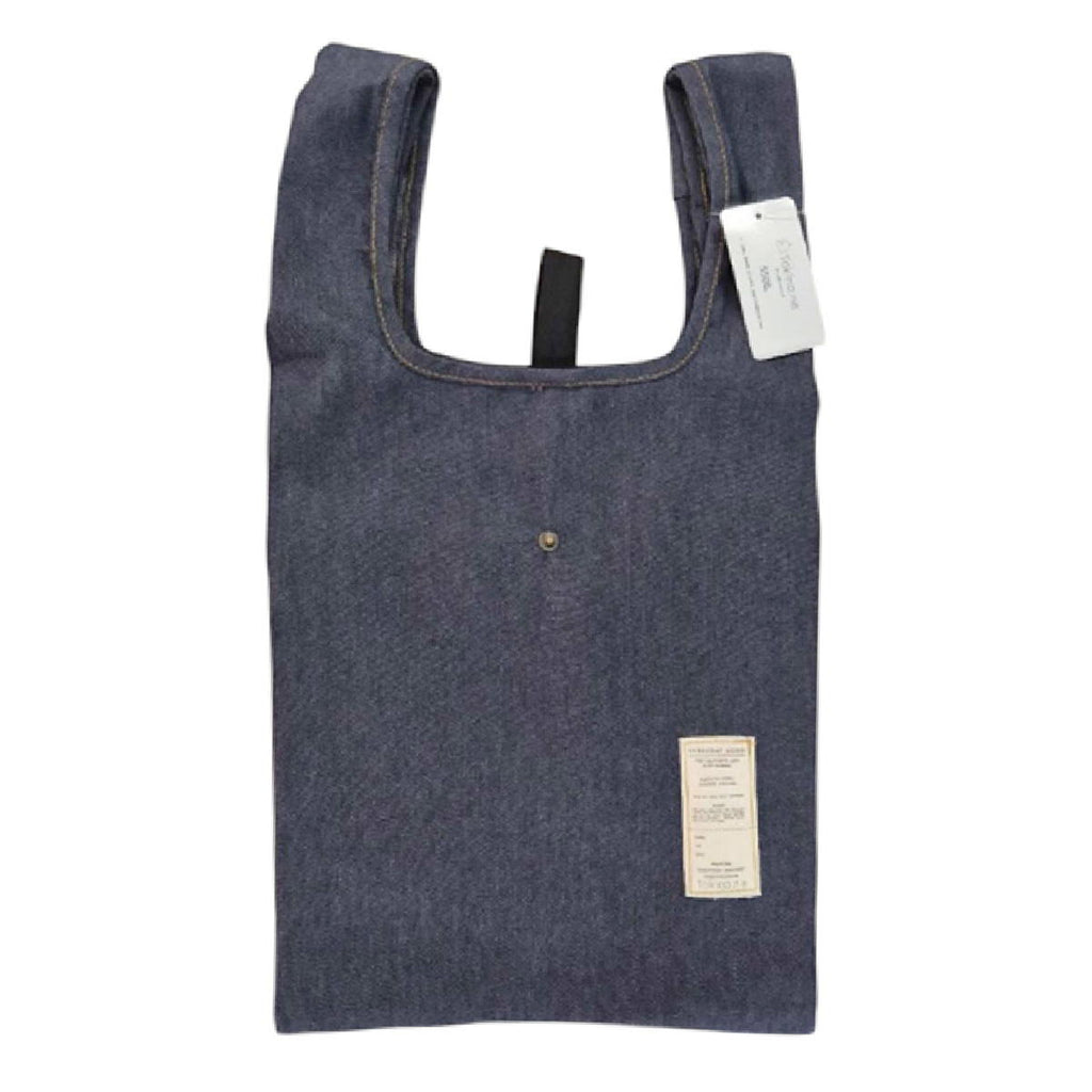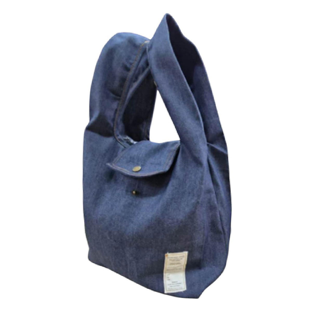 折り畳みバンド付きのデニム風エコバッグ。