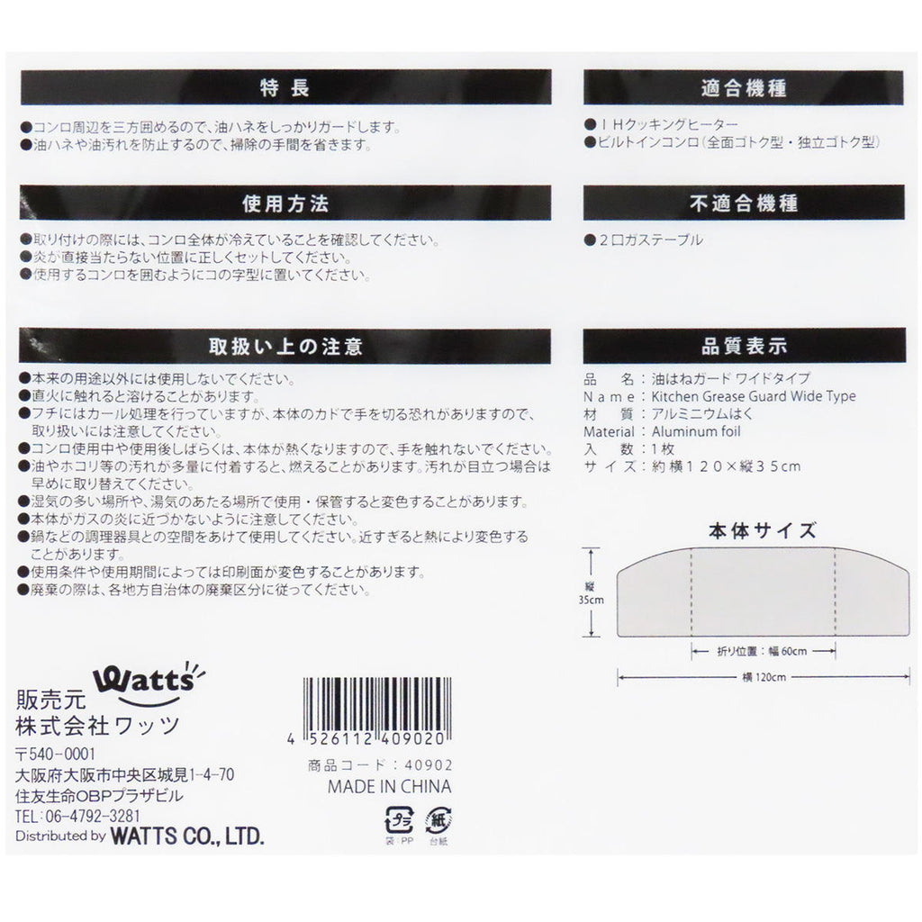 ワイドタイプの油はねガード。