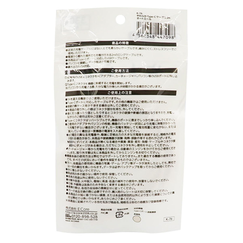 従来の充電ケーブルにはない、とても柔らかいケーブルで絡みにくくストレスフリーでご使用いただけます。