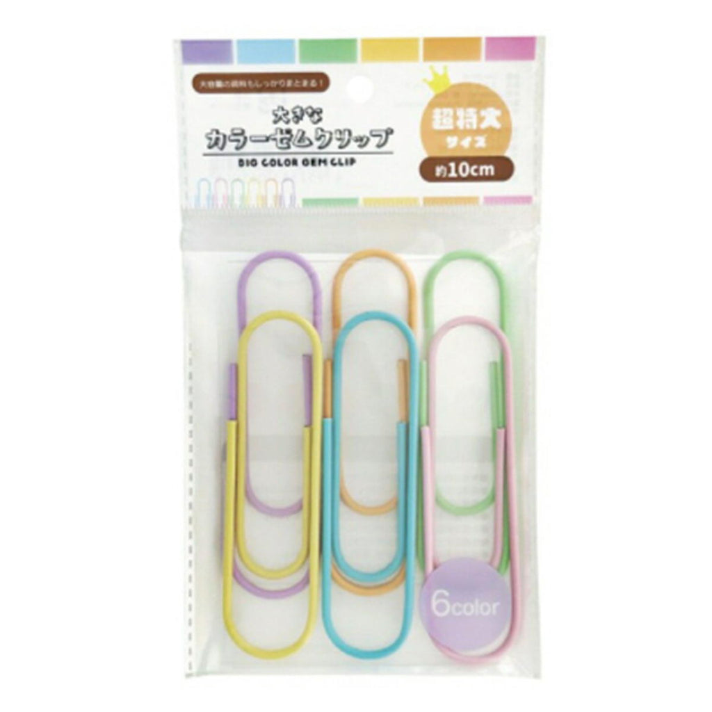 パステルカラー色のかわいい大きなゼムクリップ6個入りです。
