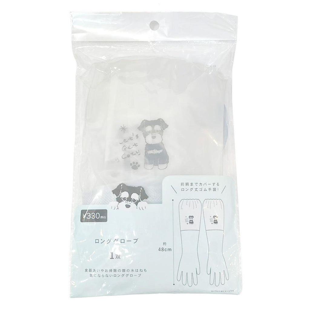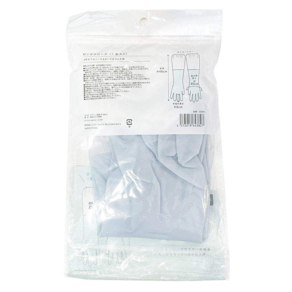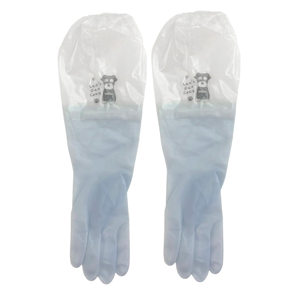 前腕までカバーするロング丈ゴム手袋。食器洗いやお掃除の際の水はねも気になりません。
