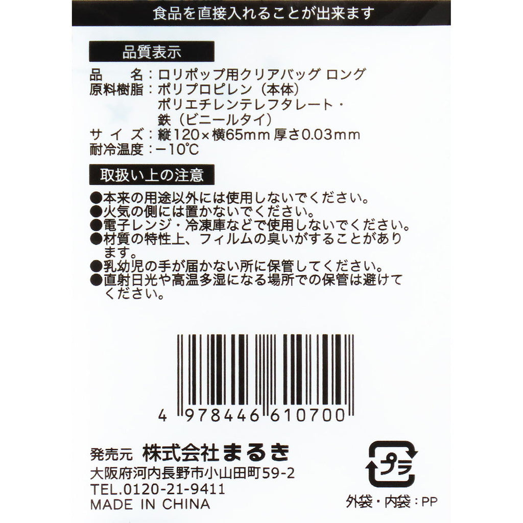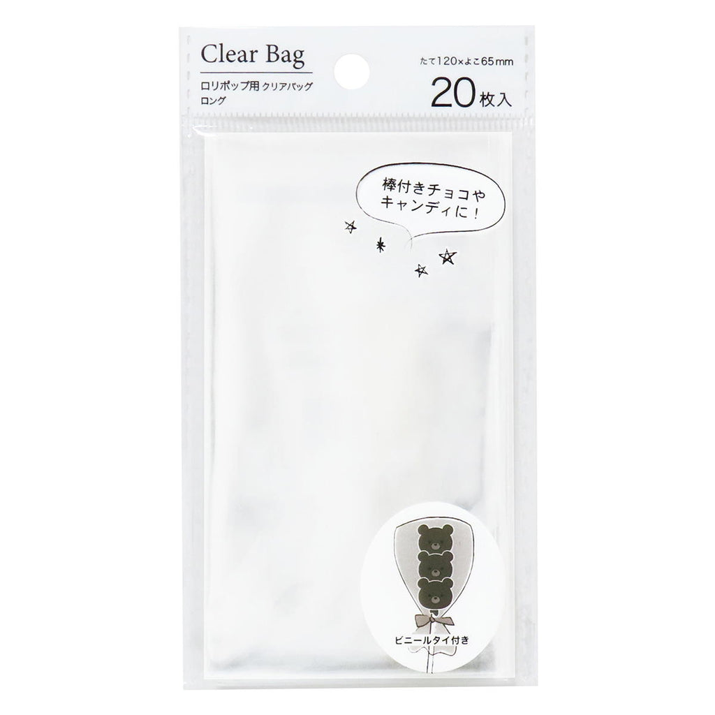 棒付きチョコやキャンディ用のクリアラッピングバッグ、ロングタイプ。