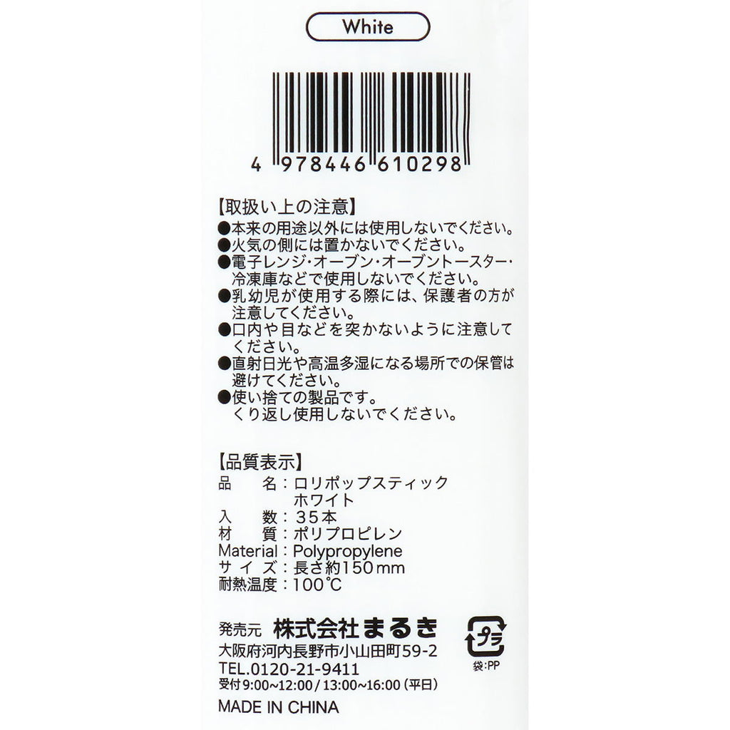 ロリポップスティックホワイト150mm35本 308977
