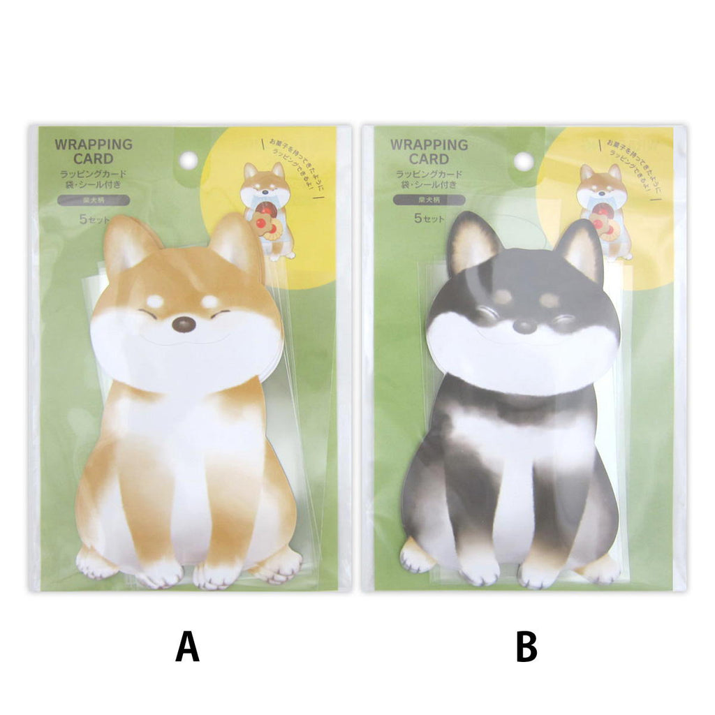 ラッピングカード袋シール付柴犬柄5セット 309030