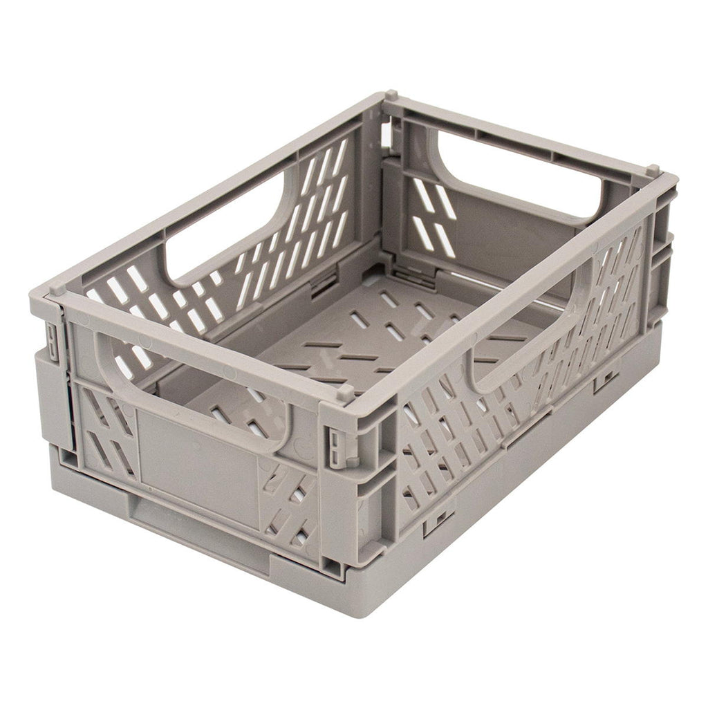 使わない時は折りたたんでコンパクトにしておける小物を整理収納するのに便利なサイズのコンテナです。