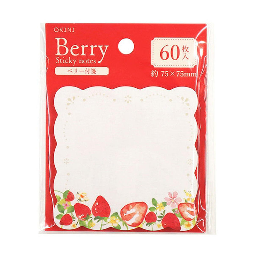 60枚入、鮮やかなベリーのイラストが描かれた、ダイカット付箋です。