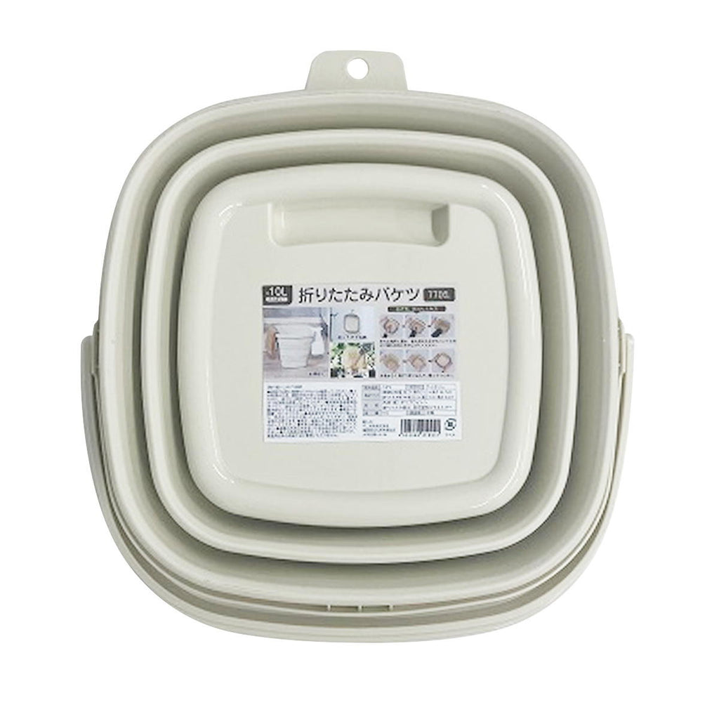 折りたたみ可能な10L容量のバケツです。約W305×D315×H247mmのサイズで、水やお湯を入れての洗濯や掃除に活躍します。折りたたむと場所を取らず、クローゼットや物置に収納できます。