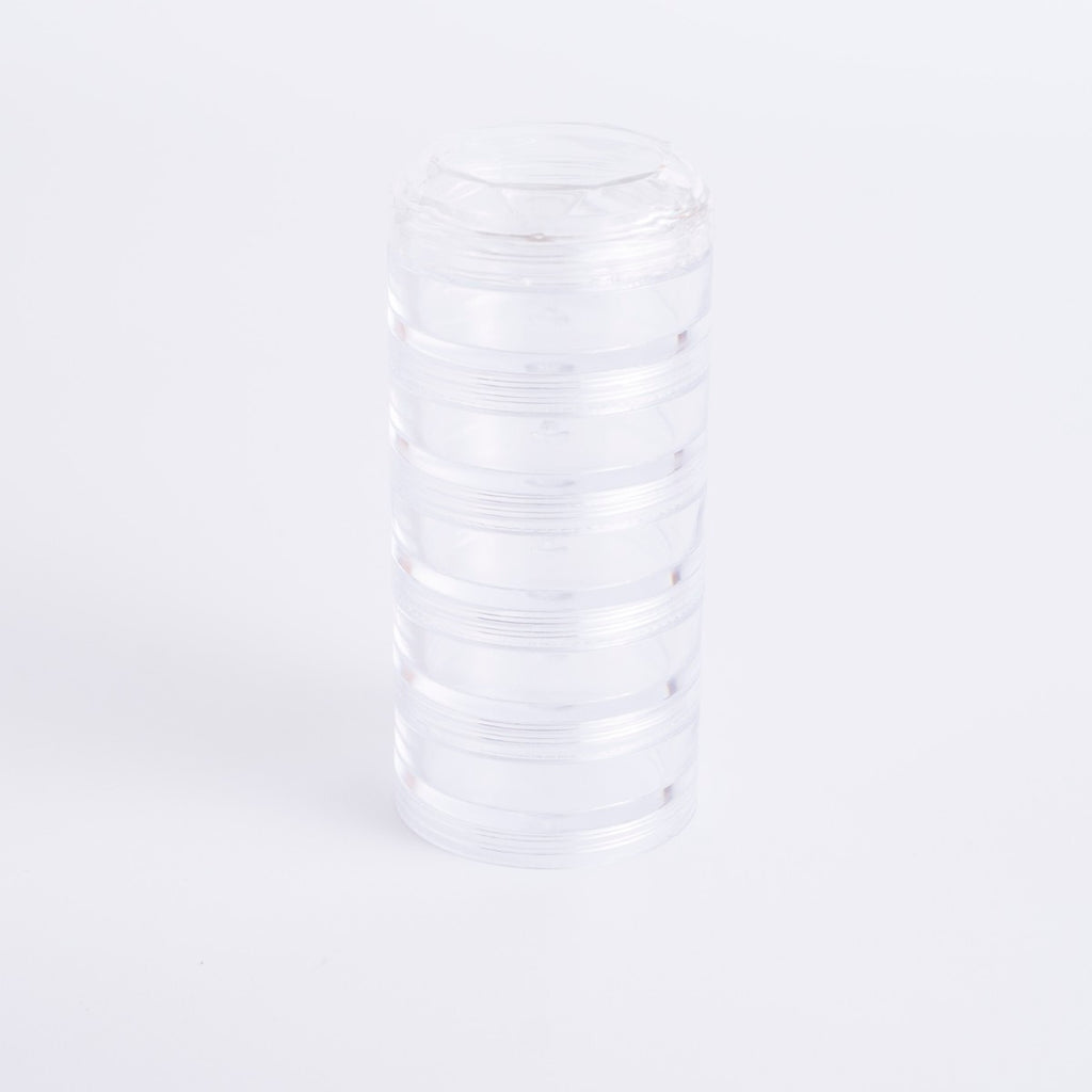5個が連結するタイプで、化粧品の詰め替えボトルとしても、ネイルなどのデコパーツの収納にも使えます。