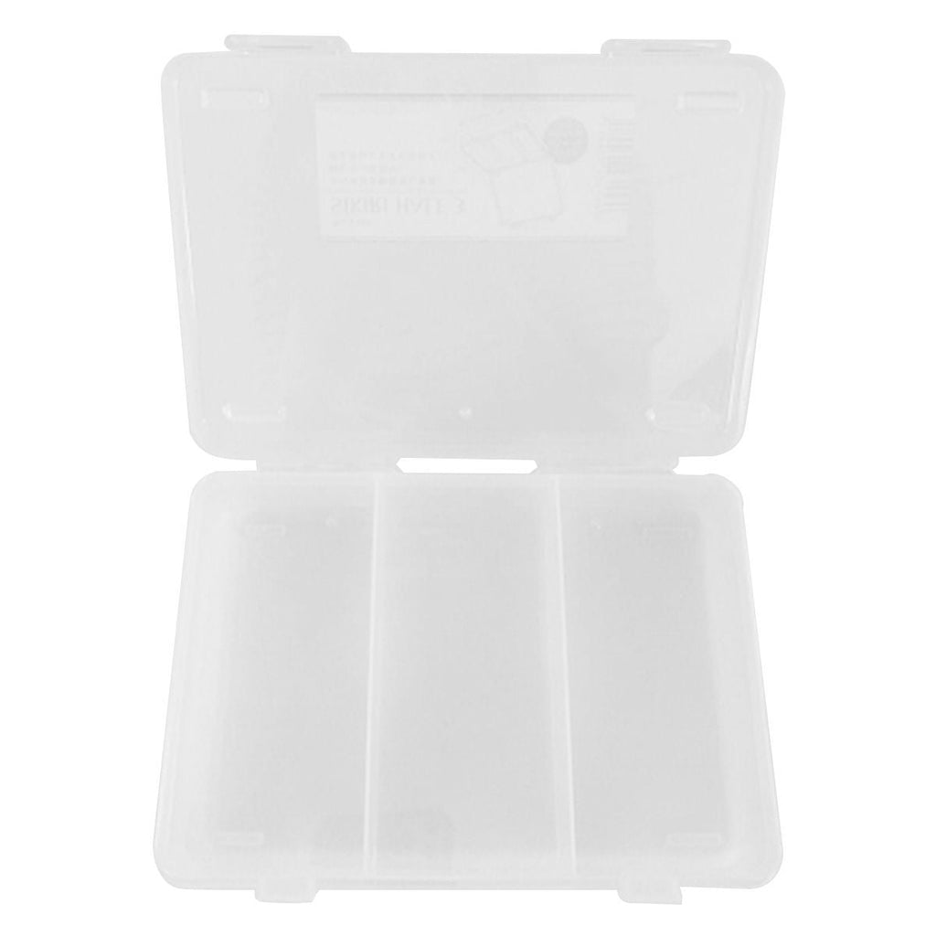 小物整理に便利な固定式の仕切りが付いた積み重ね可能なクリアケースです。