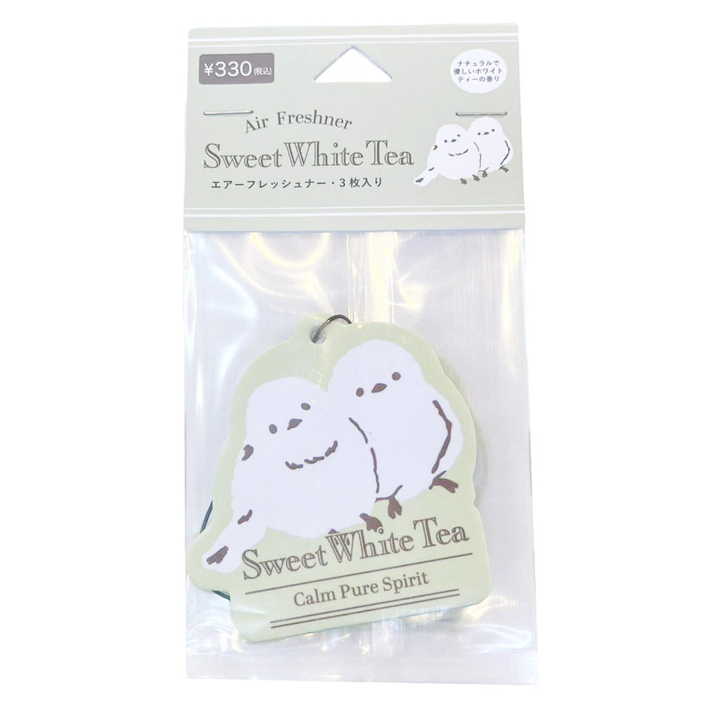 かわいいシマエナガの総柄がデザインされたエアーフレッシュナー3枚セットです。サイズは約73×75mmで、吊り下げひも付きで車、お部屋、ロッカー、トイレなどいろいろな場所に設置できます。