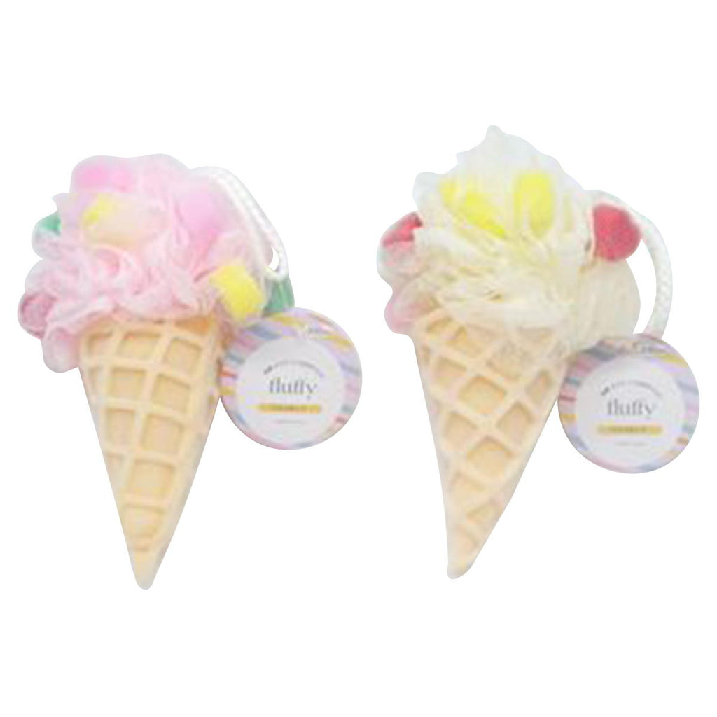 アイスの形をした可愛いバススポンジです。アイスのコーンと、複数層のアイスをモチーフにした遊び心あるデザイン。見ているだけで、お風呂の時間がはかどります。