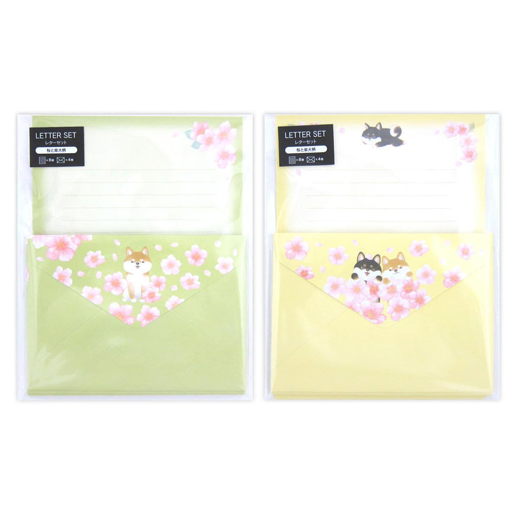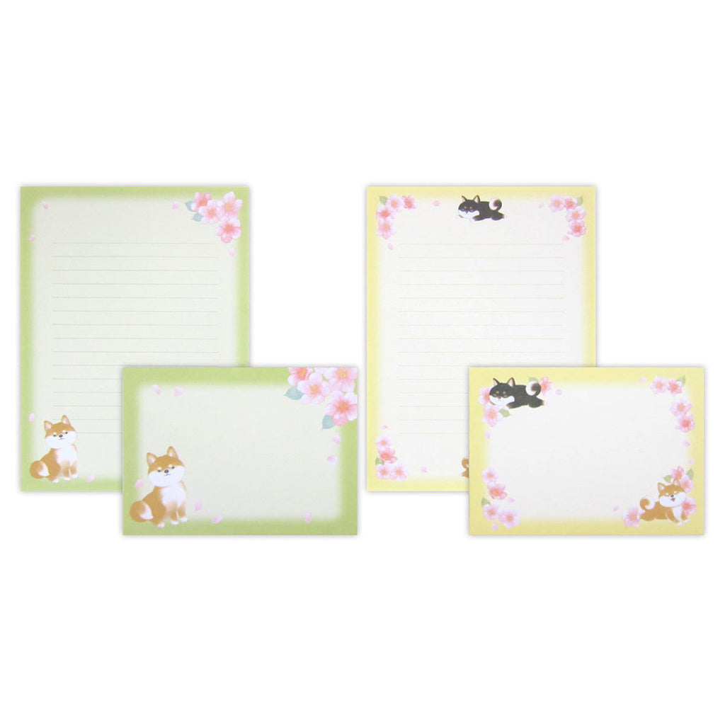 桜と柴犬をデザインした封筒と便箋のレターセットです。