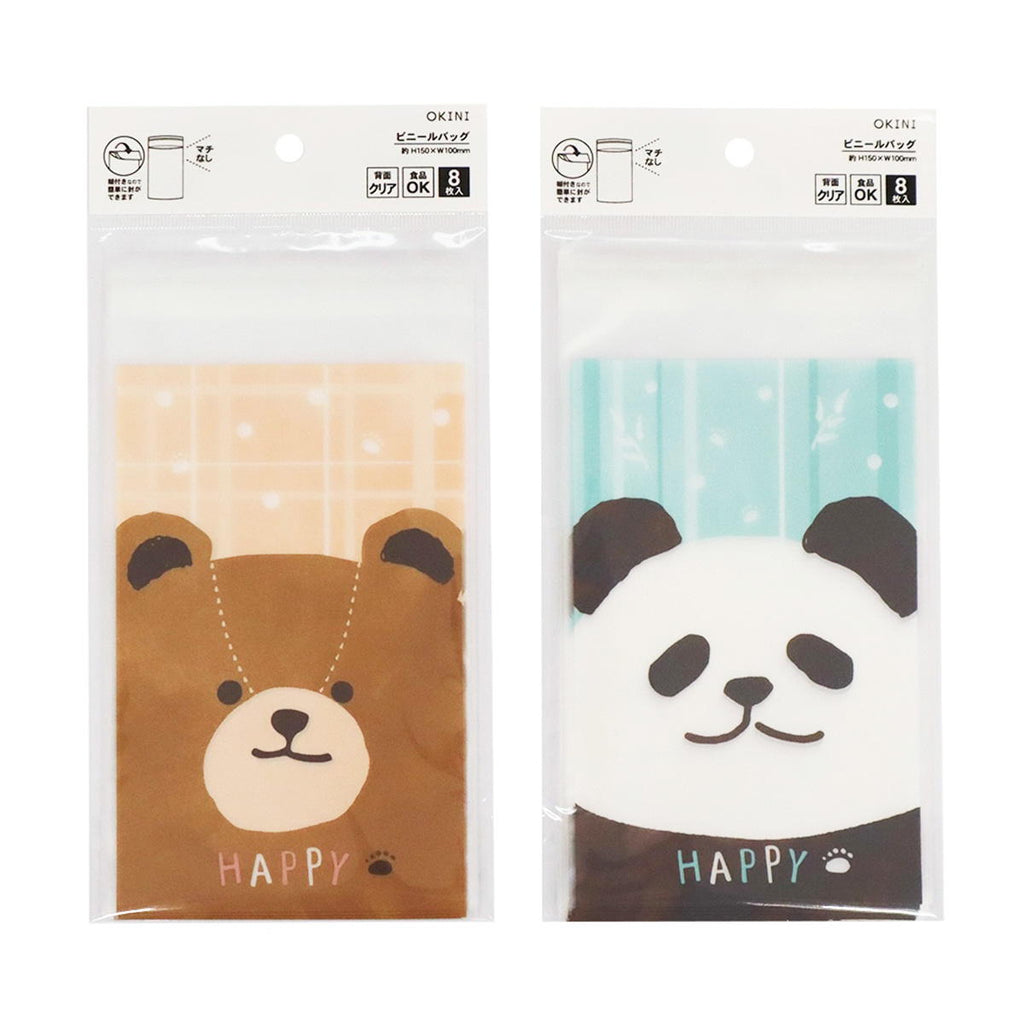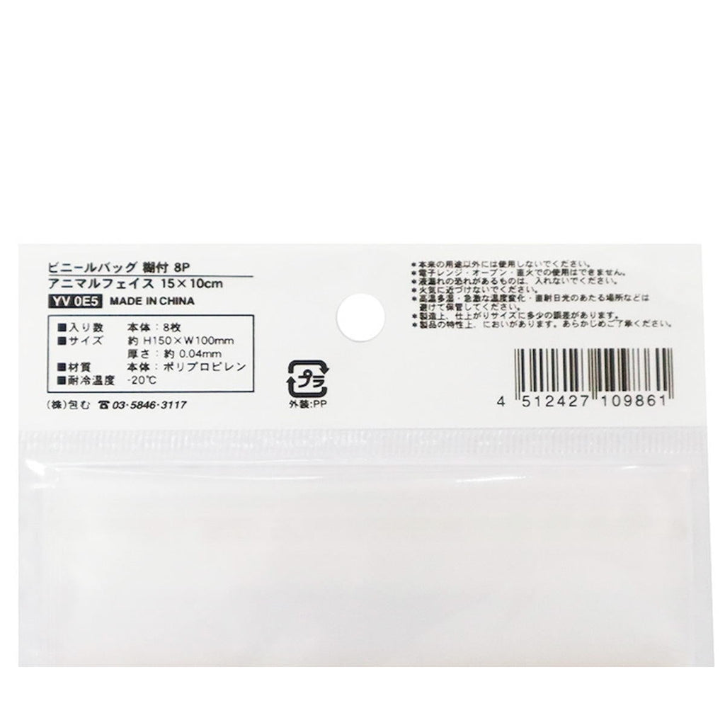 アニマルの顔が大きく印刷された、糊付きビニールバッグです。