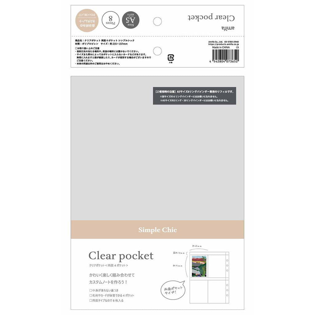 名刺等が入るA5・6リングバインダー用クリアポケットです。