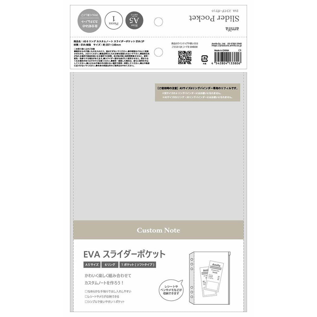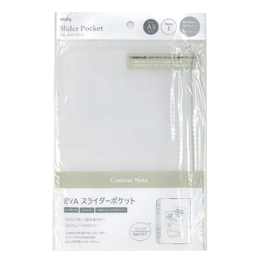 小物を入れるのに便利なA5・6リングバインダー用スライダーポケットです。