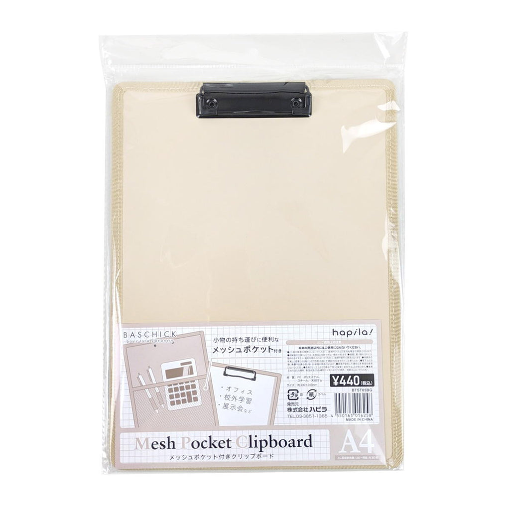 裏面にメッシュタイプのポケットが付いたクリップボードです。
