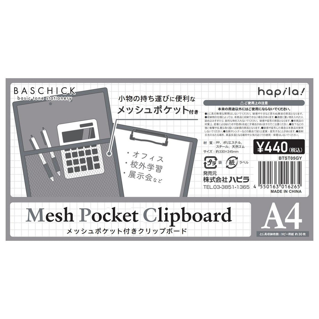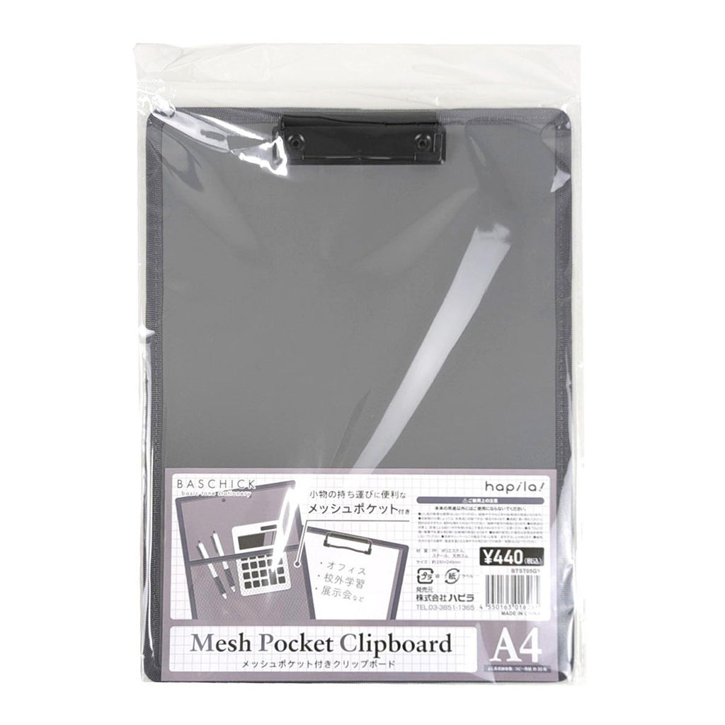 裏面にメッシュタイプのポケットが付いたクリップボードです。
