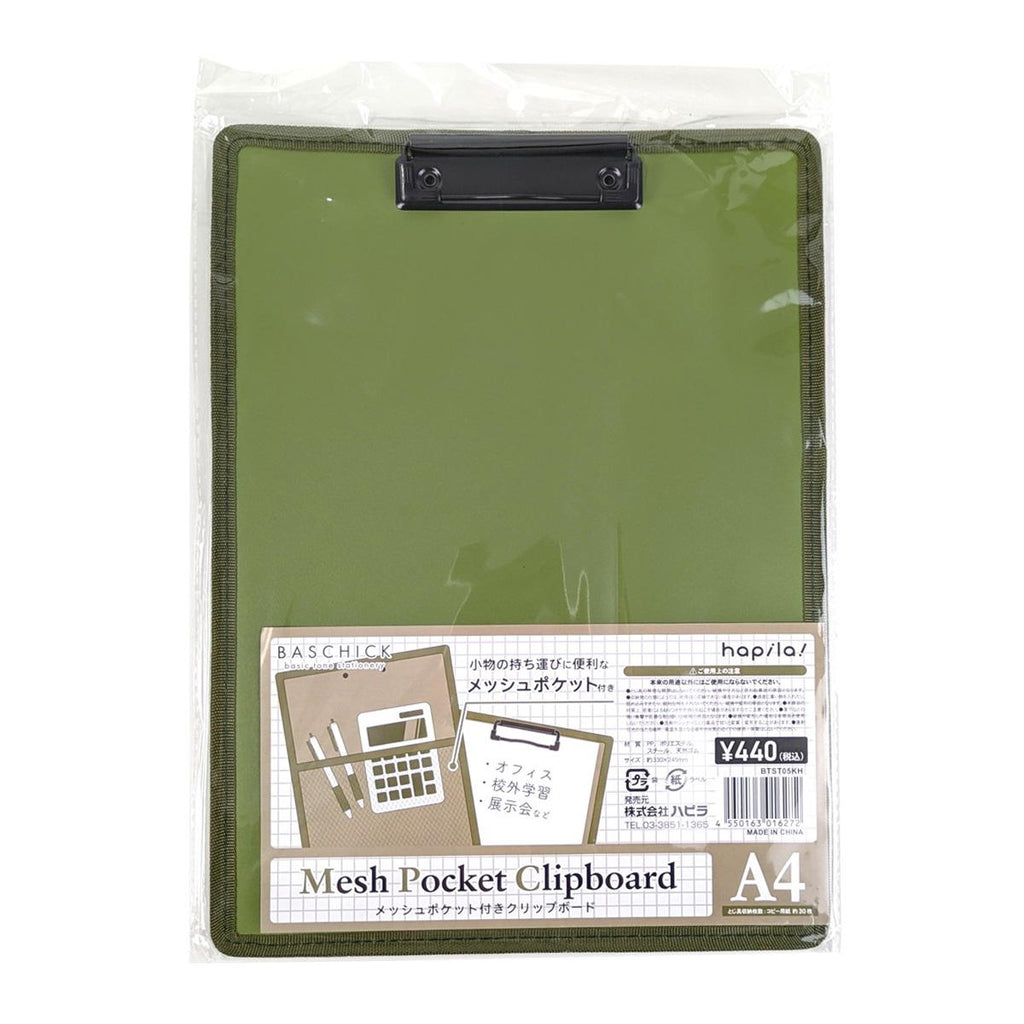 裏面にメッシュタイプのポケットが付いたクリップボードです。