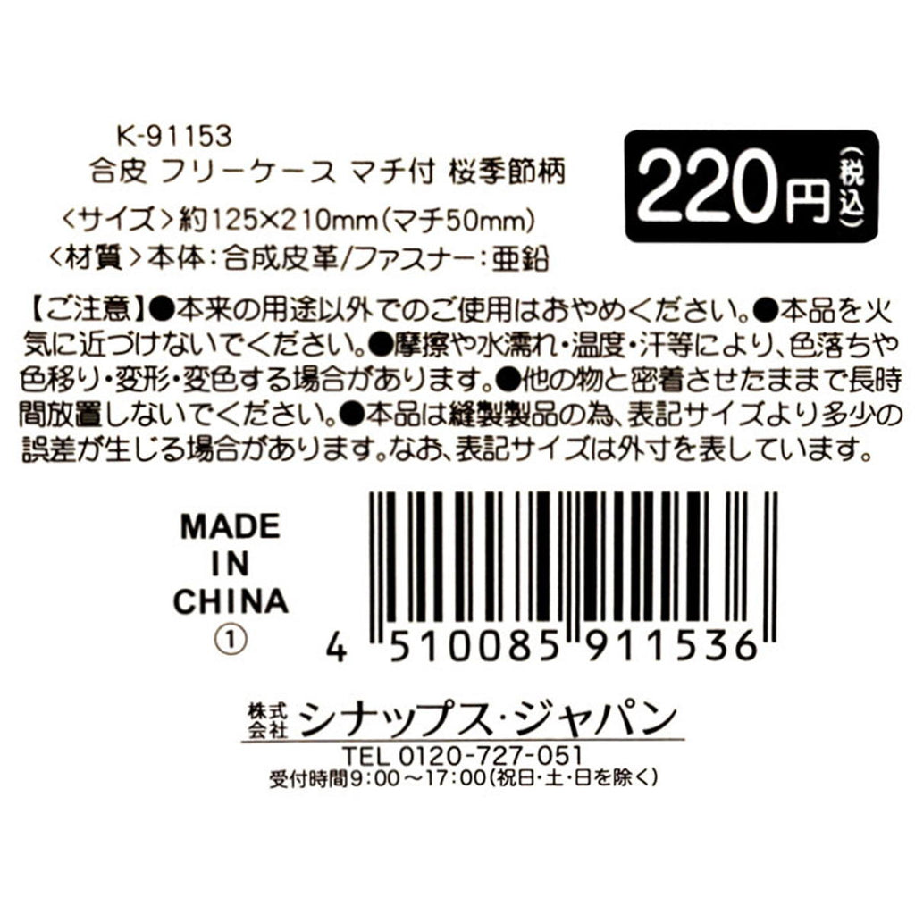 さくら花柄のプリントが可愛い合皮生地のマチ付フリーケースです。