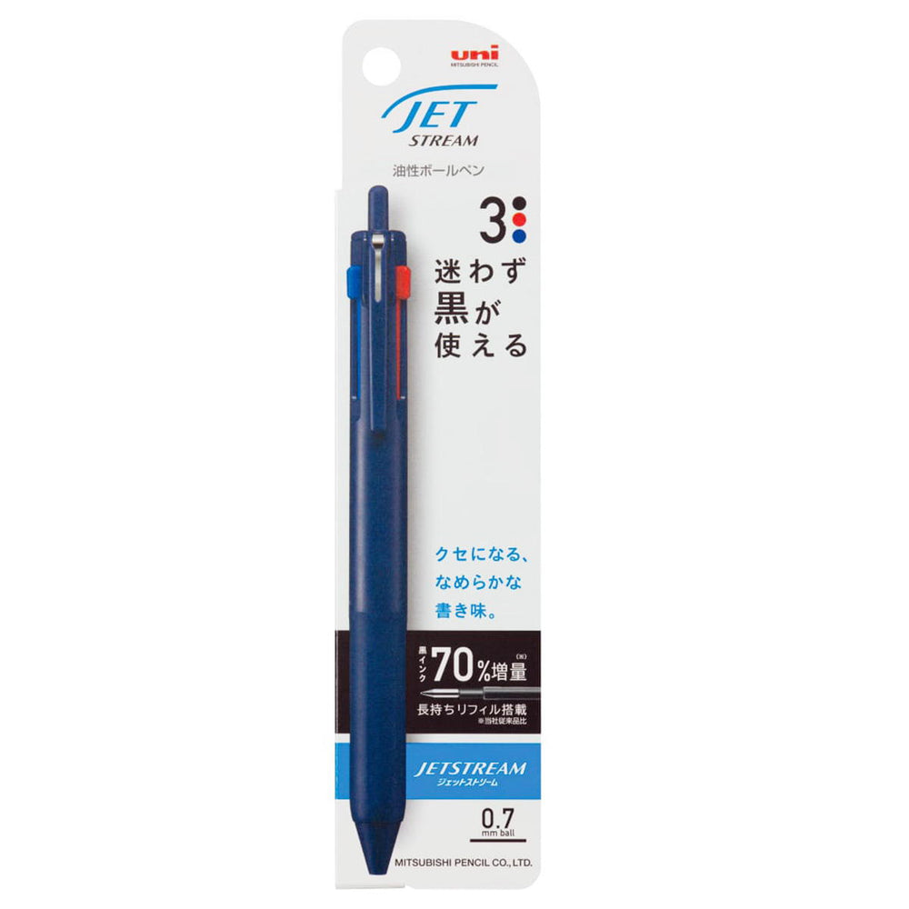 ジェットストリームインク搭載の3色ペン。