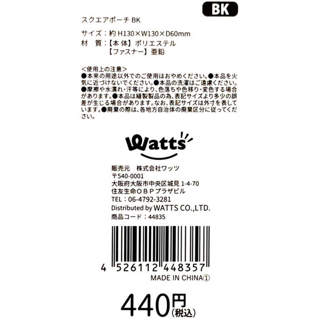 旅行に持っていくコスメやヘアアクセサリーなどを入れるのに便利なブラックカラーのスクエアポーチです。