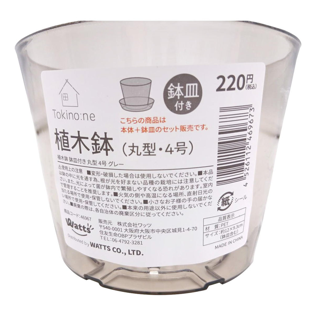 Tokinone PB.植木鉢鉢皿付き丸型 4号 グレー 046967