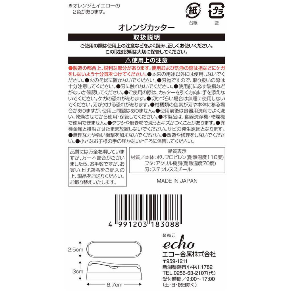 (1)オレンジの厚皮切り、(2)オレンジの薄皮切り、(3)オレンジの種取りと、3つの機能がついて便利です。