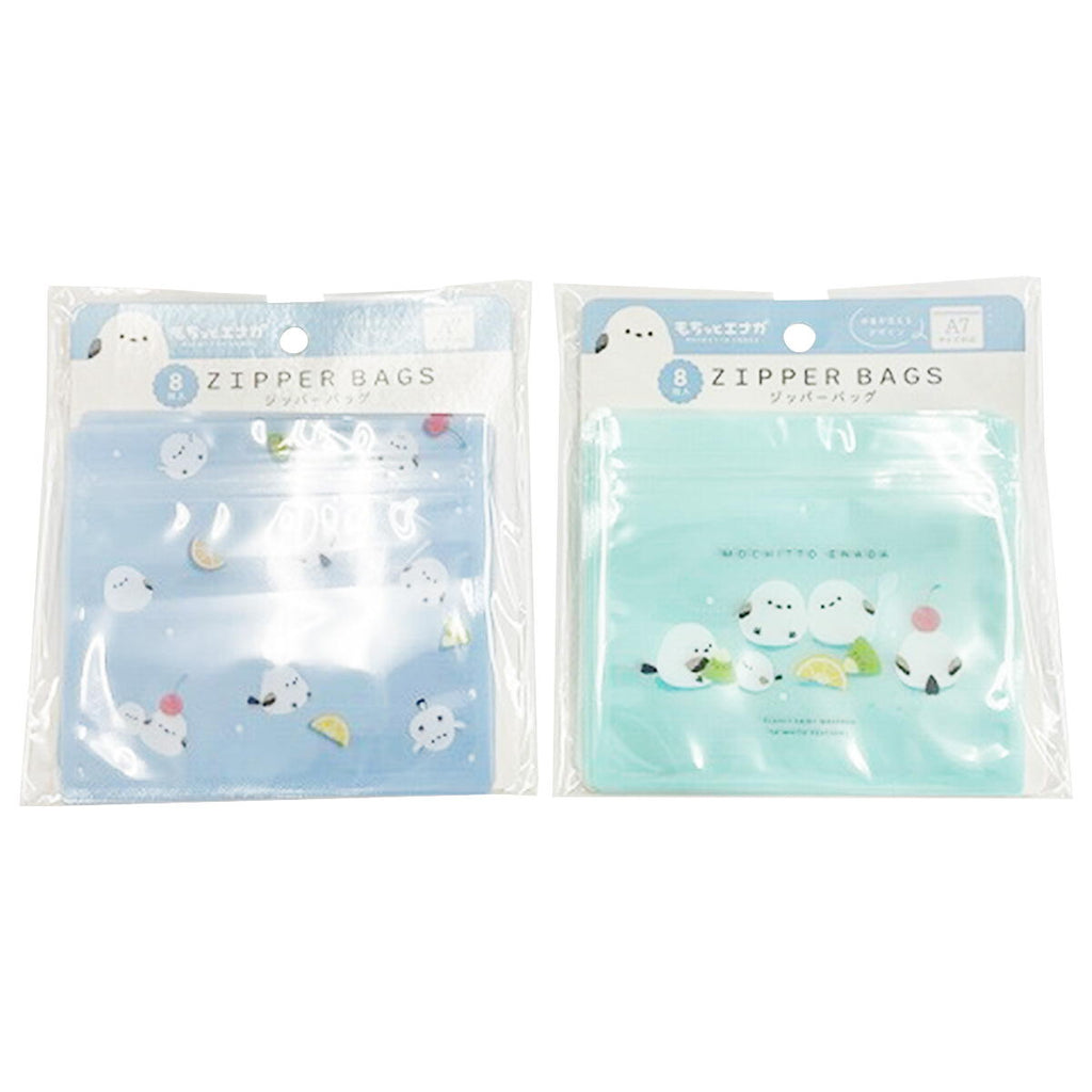 もちっとしたシマエナガ柄かわいい小物の収納や携帯に便利なチャック付き袋です。