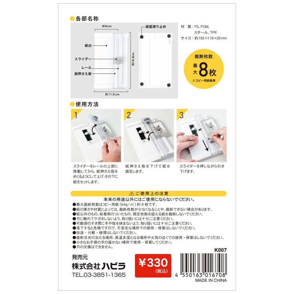 裁断枚数は、コピー用紙最大8枚可能。