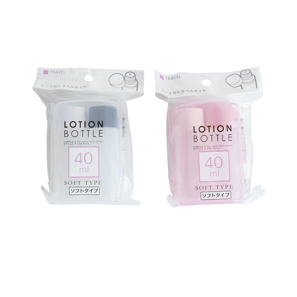 40mlのソフトタイプ詰替えボトルが2本セットになった、携帯に便利なアイテムです。コンパクトなサイズ感で、機内への持ち込みも可能な容量なので、国内外の旅行やちょっとした外出時にも重宝します。シャンプーやローションなどをスマートに持ち運べるので、荷物をスリムにまとめたい方に最適です。