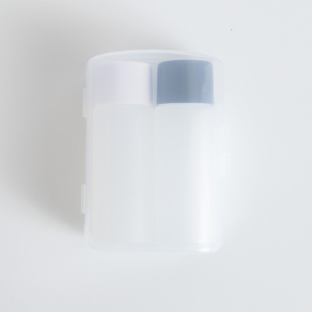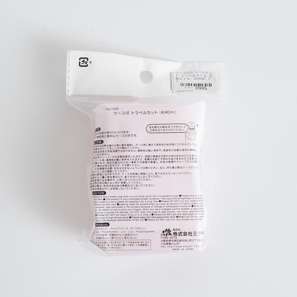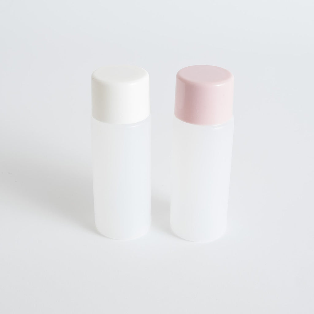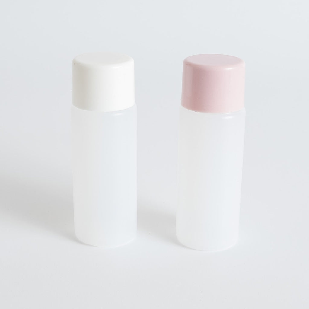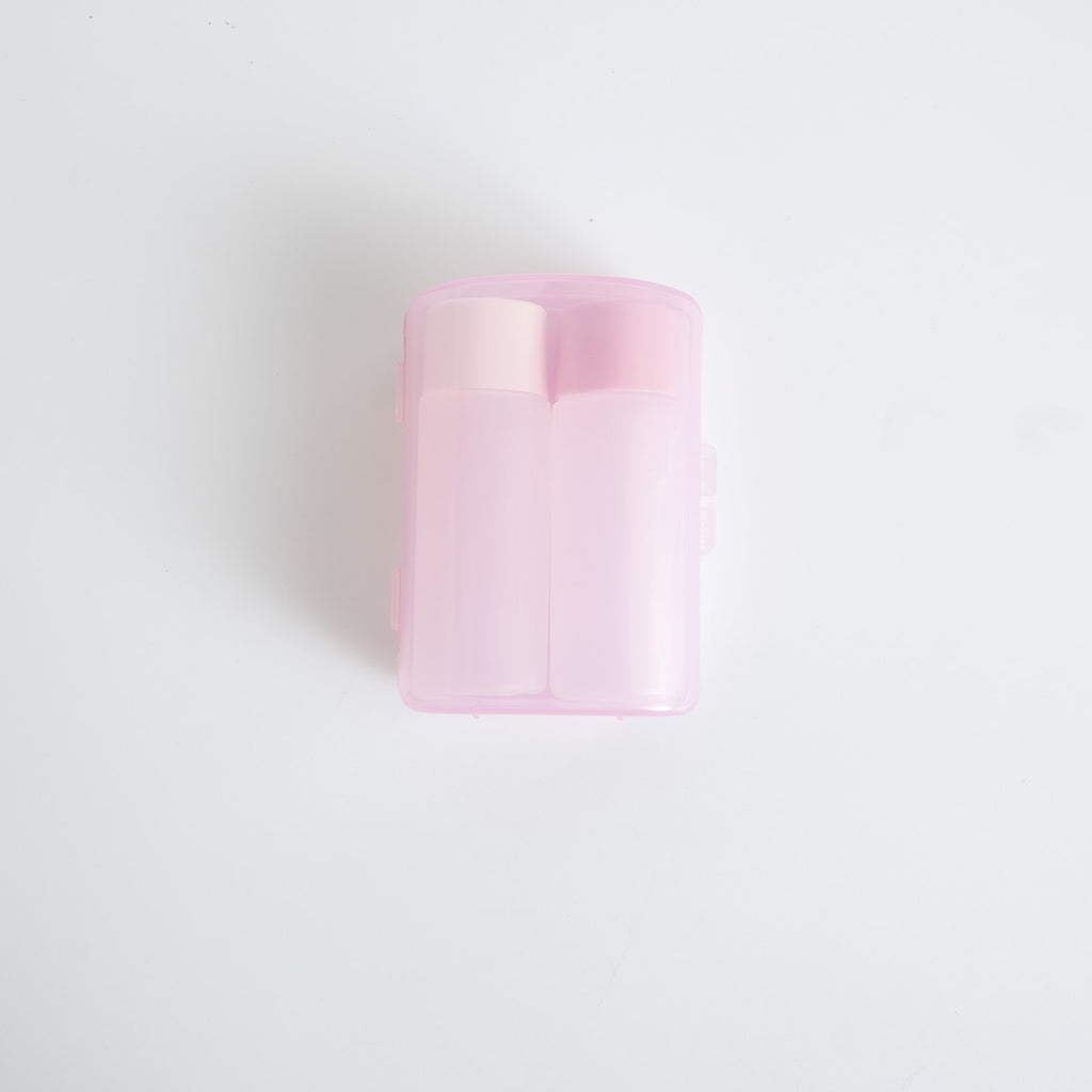 クリアとピンクの2種類から選べるカラーバリエーション。ボトルのフタとケースのカラーが統一されており、見た目にも可愛らしく、持っていて気分が上がるデザインです。内容物ごとに色分けして使い分ければ、旅行先でも中身を間違えることなく使えて便利です。