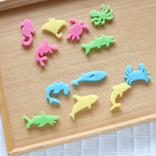 水に入れるとワクワク広がる!12種のカタチが飛び出すスポンジカプセル