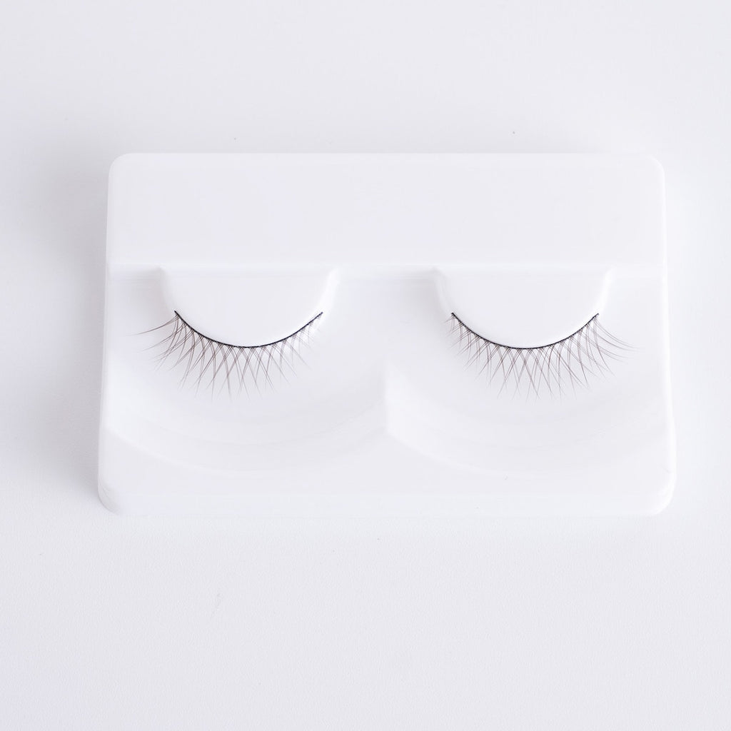 つけまつげの幅は控えめなハーフタイプ。目尻にかけて程よくボリュームが出る設計で、目元に抜け感と奥行きが生まれます。フルタイプと違い圧迫感がないため、ナチュラルメイクにも好相性。メイクの仕上げにさりげない華やかさをプラスしたいときに活躍します。