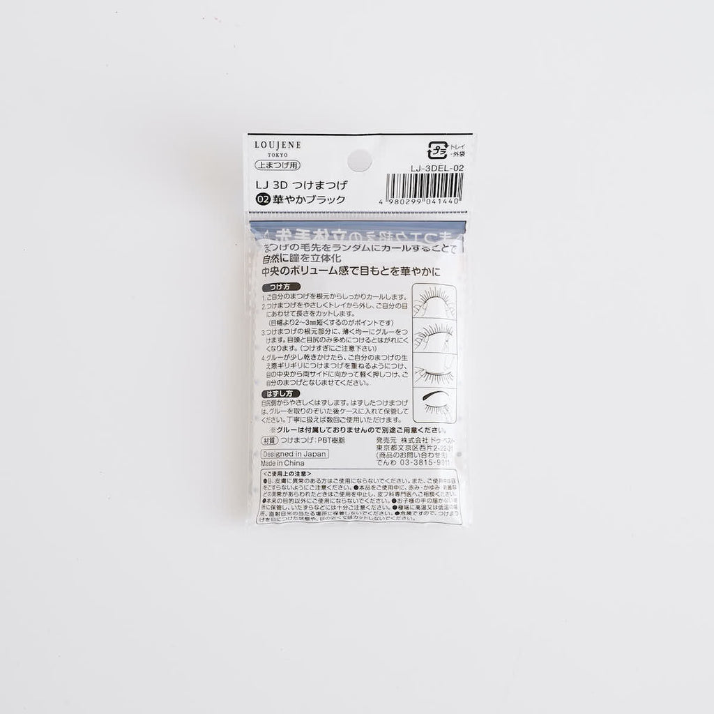 華やかタイプのブラックカラーは、目元を引き締めながら華やかさを強調します。特別なイベントやパーティーシーンはもちろん、日常使いにも対応可能。軽やかなつけ心地で長時間の使用にも快適です。LJ 3D付けまつげには、このほか、「華やかブラウン」「ネコ目ブラック」などの種類もあります。
