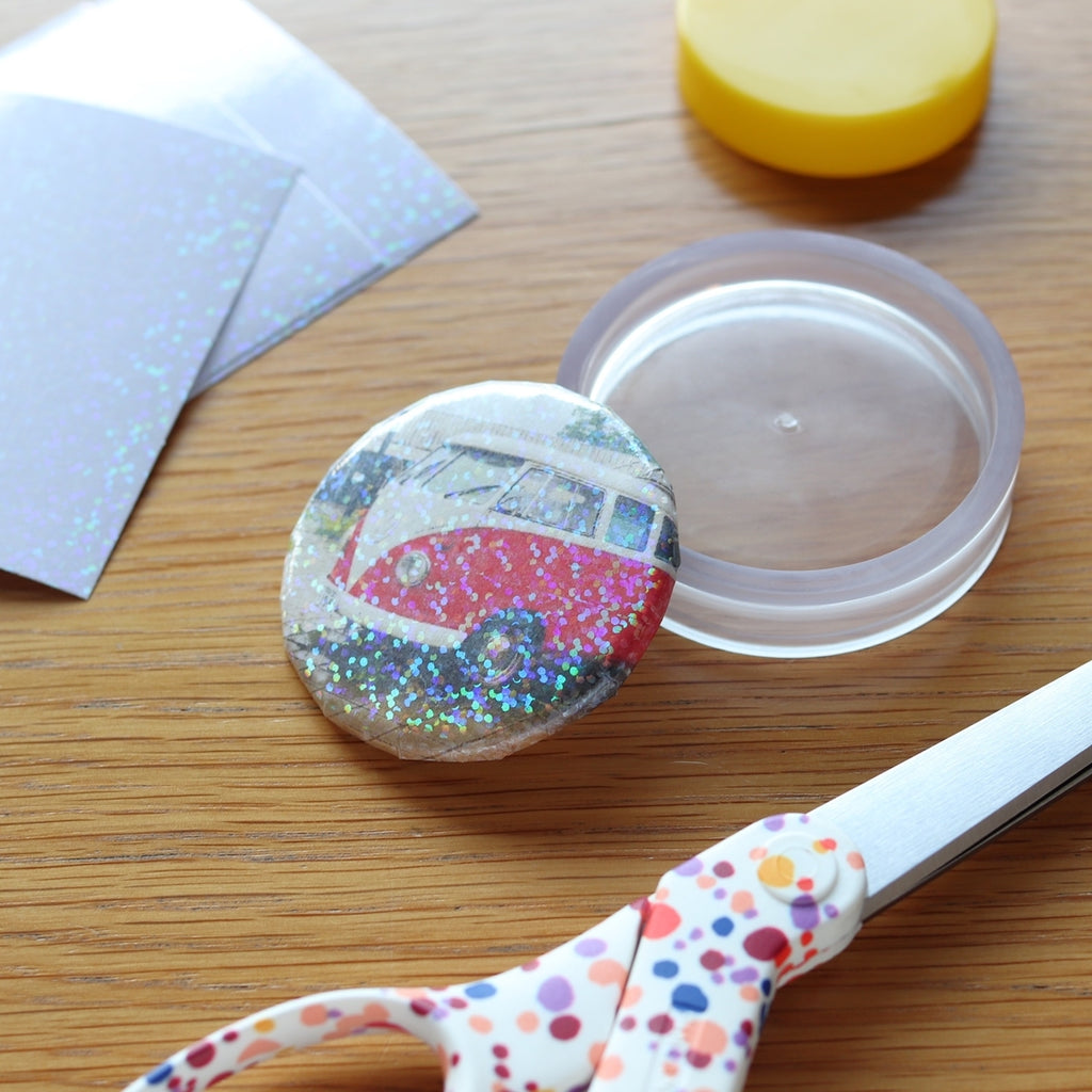 キラッと光る、あなただけの缶バッジに!透明ホログラムシール