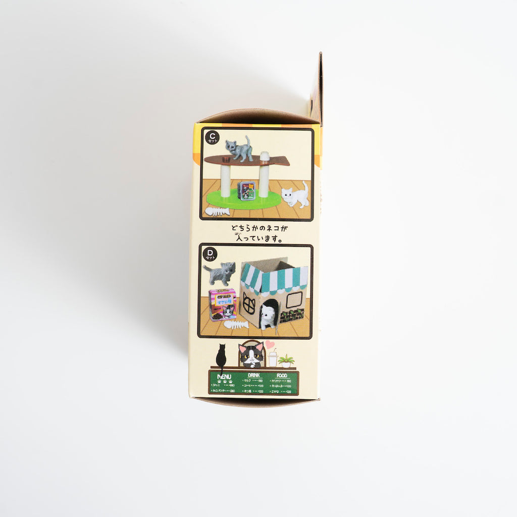 ラインナップは全4種類。ランダムで1種が入っており、どれが出るかは開封してからのお楽しみです。それぞれ異なるポーズの猫と異なる遊び場がセットになっているため、揃えて並べれば猫カフェの世界がどんどん広がります。集める楽しみもあり、コレクション性に優れたアイテムです。